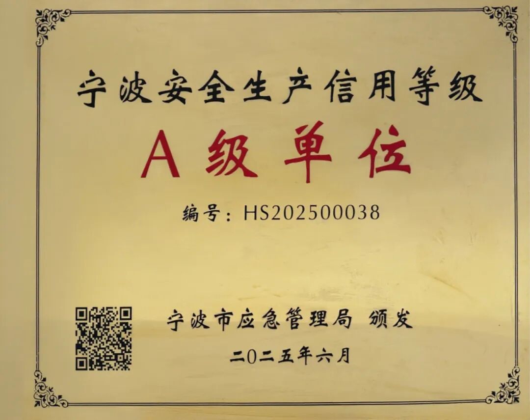 成功斬獲“寧波市安全生產(chǎn)信用等級(jí)A級(jí)”榮譽(yù),這是寧波市對(duì)市場(chǎng)主體安全生產(chǎn)綜合能力的最高級(jí)別認(rèn)可。